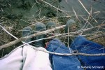 We sat on the bank, hiding